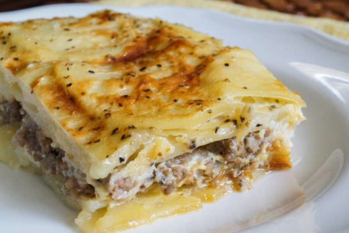 Potom staviti mljeveno meso i prekriti ostatkom krumpira.