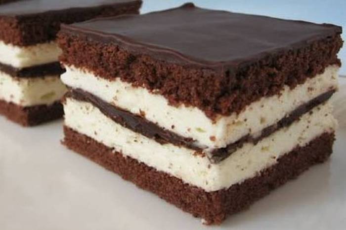 Slaganje: Najprije na biskvit treba staviti pola kreme, preko toga prvu glazuru i onda staviti u frižider da se glazura stvrdne. Nakon toga ide ostatak kreme, zatim drugi biskvit i, na kraju, druga glazura.