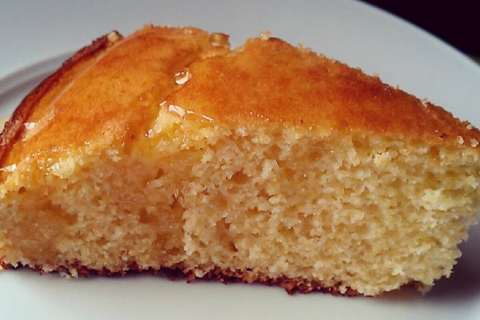 Premda je velika većina nas nekako podozriva prema receptima za torte i kolač koji sadrže kukuruzno brašno, ovo je recept koji se jednostavno mora probati. Kolač je mekan i prhak, fantastičnog okusa i gotov za manje od pola sata. Istina, i poprilično je sladak, pogotovo ako dodate preljev od meda i maslaca.