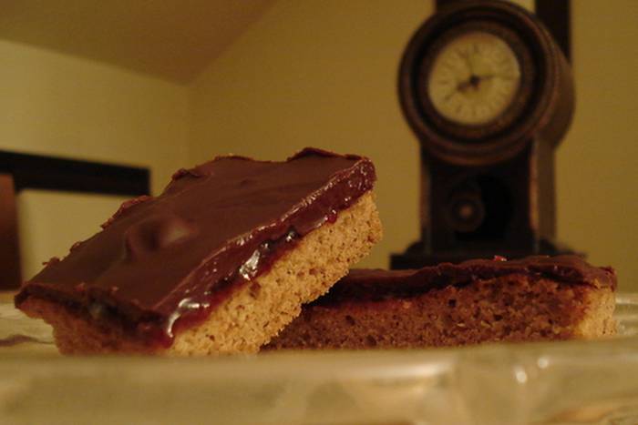 Prohlađeni biskvit prelijemo čokoladnom glazurom.