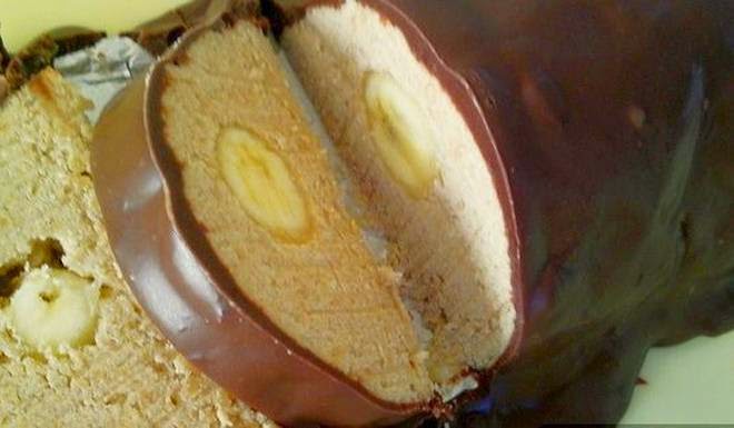 Uzduž staviti 2 banane i pokriti ostatkom mase.