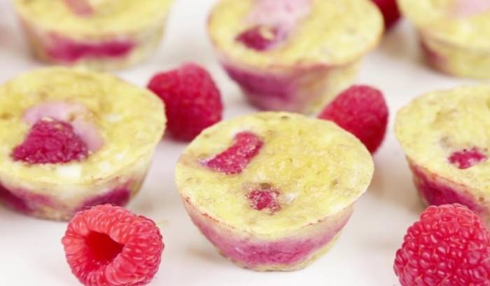 Kalupe za mafine malo podmažite, pa u svaki dodajte par malina. Zatim preko sipajte “tijesto” i pecite na 190 °C oko 12 minuta.
