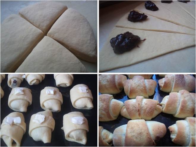 Umotavamo kiflice prema unutra, da bi tijestom upakovali pekmez da ne curi prilikom pečenja.