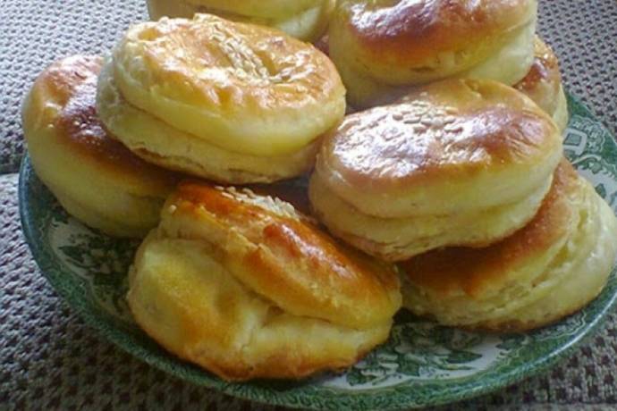Izvaditi pogačice modlom ili čašom, poredati u margarinom premazan lim za pečenje ili na papir za pečenje, premazati umučenim jajetom i staviti da se peče 30 minuta na 200 °C.