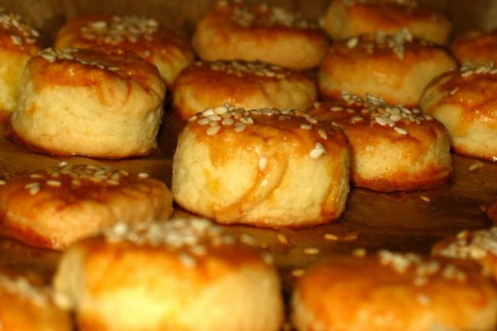 Ostavimo da odstoje nekih pola sata ili malo više. Nakon toga namažemo ih umućenim jajetom i pospemo sezamom.