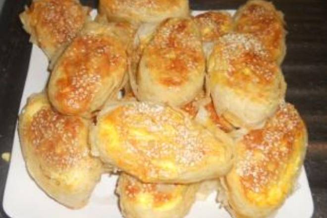 Podmazati pleh, naredati komade rolata, na svaki od njih staviti kašiku smjese napravljene od 2 pavlake i 3 jaja. Nakon toga se pospu sezamom i stavljaju u rernu.