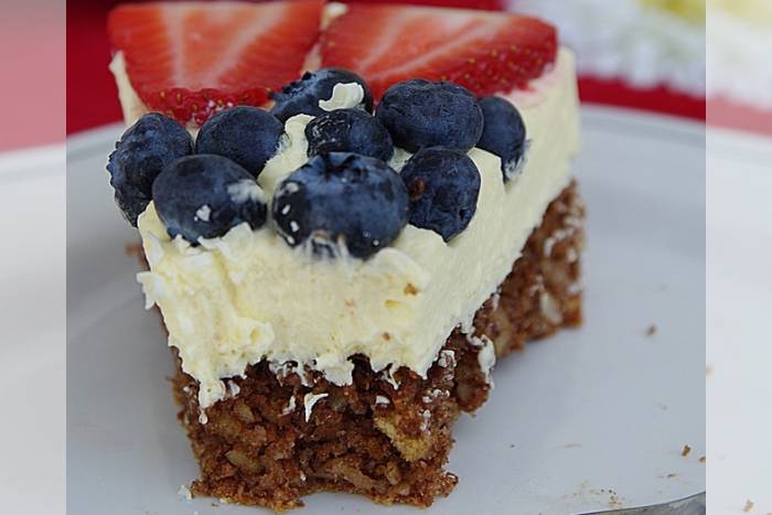 - Napomena 2: Ova se torta može zamrznuti i poslužiti kao sladoled torta. U tom slučaju ćete zamrznutu tortu izvaditi iz zamrzivača i staviti je u hladnjak nekih pola sata do sat prije posluživanja, da opusti, poslagati voće i sluziti je kao ledenu poslasticu.