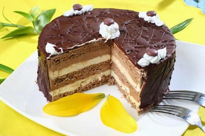 Na kraju još stavite glazuru – otopite 100 g čokolade sa malo ulja i prelijte preko treće kore