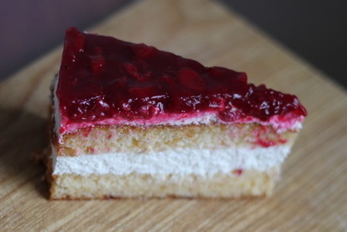 Ocijeđene višnje posložimo ravnomjerno na tortu.