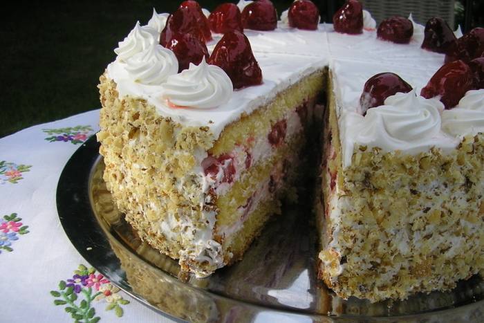 11. Premazati preostalim šlagom i ukrasiti jagodama.